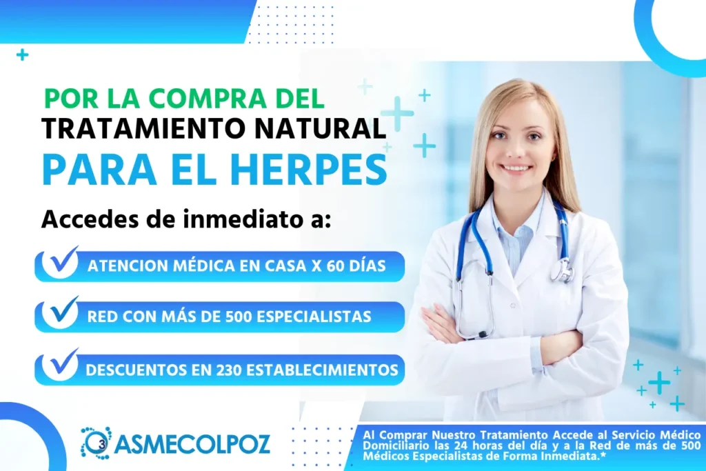 El herpes (tipo 1 o tipo 2) es una condición viral que no solo impacta físicamente, sino también emocional y mentalmente. En ASMECOLPOZ entendemos esa realidad, y por eso ponemos a tu alcance un tratamiento natural complementario de 60 días, que ha sido clave para muchas personas que buscaban reducir los brotes, mejorar la apariencia de su piel, recuperar la confianza… y alcanzar un estado de bienestar donde el virus deja de manifestarse