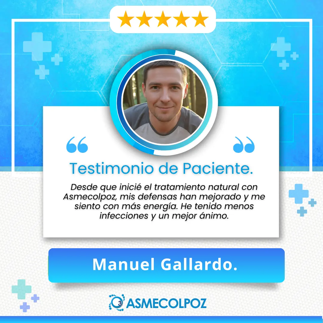 En Asmecolpoz, llevamos más de 20 años apoyando a personas que buscan una opción natural y complementaria para fortalecer su sistema inmunológico, equilibrar su cuerpo y recuperar su bienestar sin efectos invasivos.